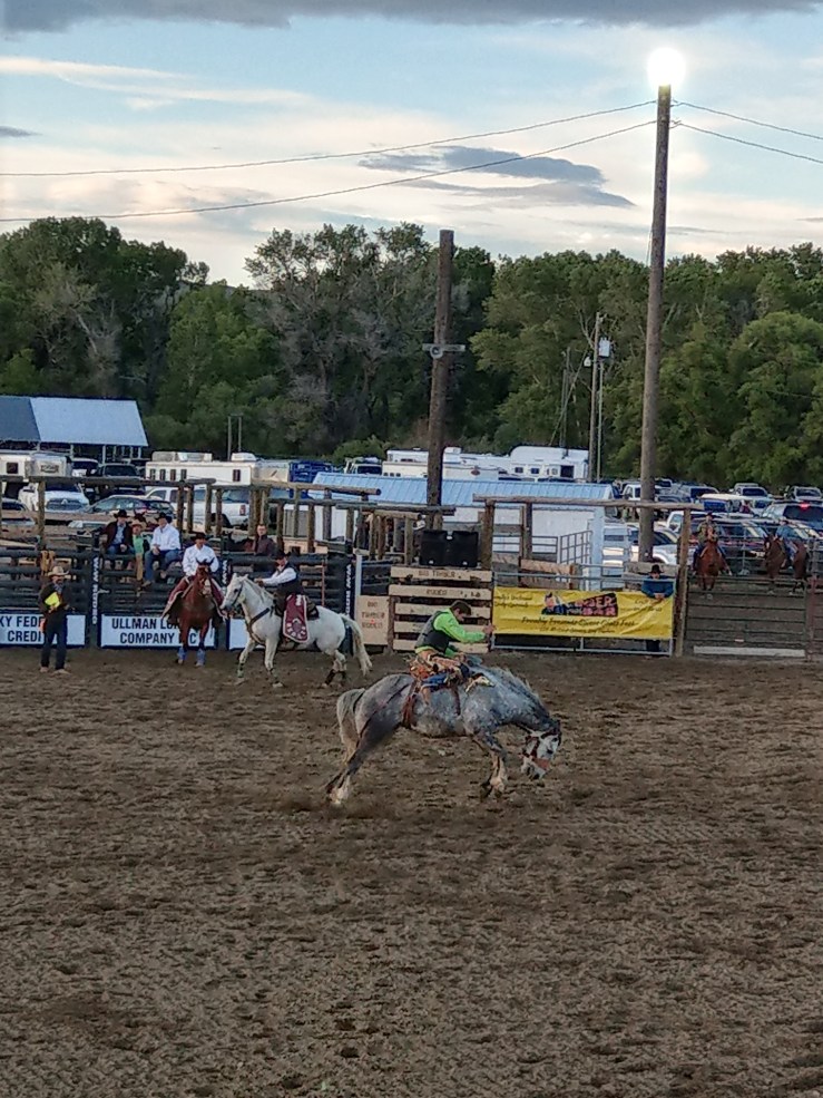 Am Freitag fuhren wir alle zum jährlichen Rodeo nach Big Timber. Naja das ist nicht so ganz mein Fall. 3 Jährige werden auf Schafe gesetzt und halten sich zwischen 1 und 4 Sekunden darauf. Das Barrel Race ist das Beste, da galoppieren Cowgirls allen Alters um ein paar Fässer und das scheint auch den Pferden zu gefallen. Höhepunkt ist das Bullriding, Kommentare erübrigen sich.