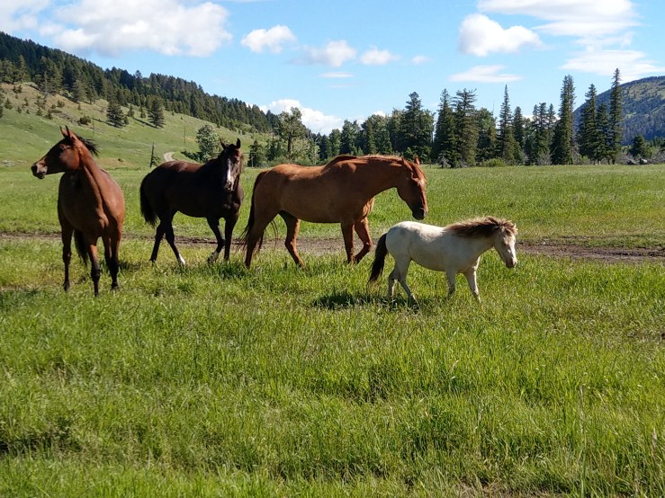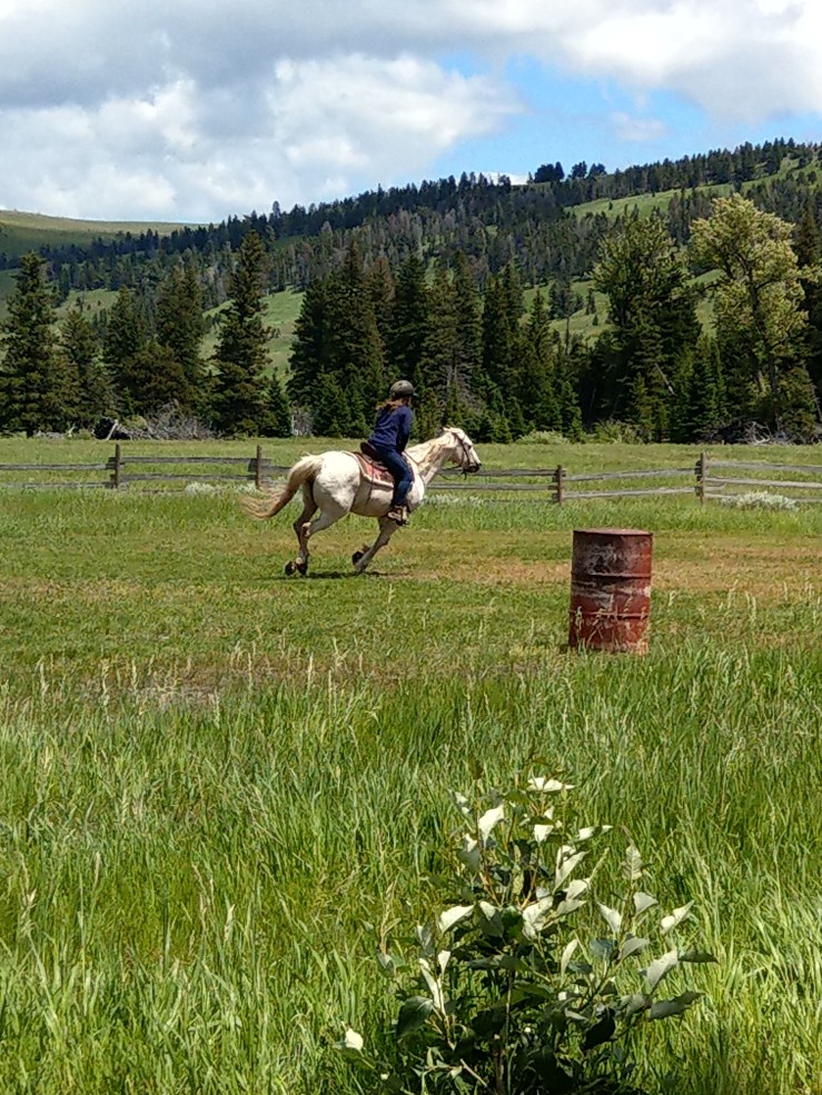 Das Sopherl wurde übrigens für ihren Galopp schwer bewundert und als künftiger Wrangler in ein paar Jahren (sie verbringen hier gegen Kost, Logis und etwas Gehalt den Sommer) angeheuert. Auch die Familie aus Arkansas war extrem beeindruckt, zumal sie selbst diverse Shows and Races geritten sind. Es gab am letzten Tag nämlich Spiele und Rennen auf dem Pferderücken (absolut freiwillig, also ohne mich)